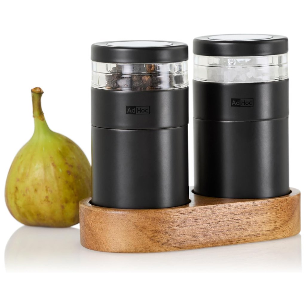 Elegantni dizajn za svaki stol. AdHoc Molto set kombinira nehrđajući čelik, drvo bagrema i akril za moderan izgled, savršen za elegantne obroke. Visokoprecizni CeraCut mlin. Izdržljivi keramički mlin jamči dugotrajno mljevenje zrna, od finog praha do grubljih komadića, za savršen okus. Jednostavno punjenje, s odvojivim poklopcem, so i biber mogu se brzo i jednostavno nadopuniti, za nesmetanu upotrebu u kuhinji ili za stolom. Prozorčić za pregled začina, prozirni akrilni prozorčić pruža pregled razine punjenja, a istovremeno štiti od svjetlosti. Kompaktan stalak od drva bagrema drži mlinove pri ruci i osigurava uredan stol, idealno za svakodnevnu upotrebu ili posebne prigode. Kompaktne dimenzije: s visinom od 8,6 cm i promjerom od 4,5 cm, mlinovi štede prostor i savršeni su za svaki sto.