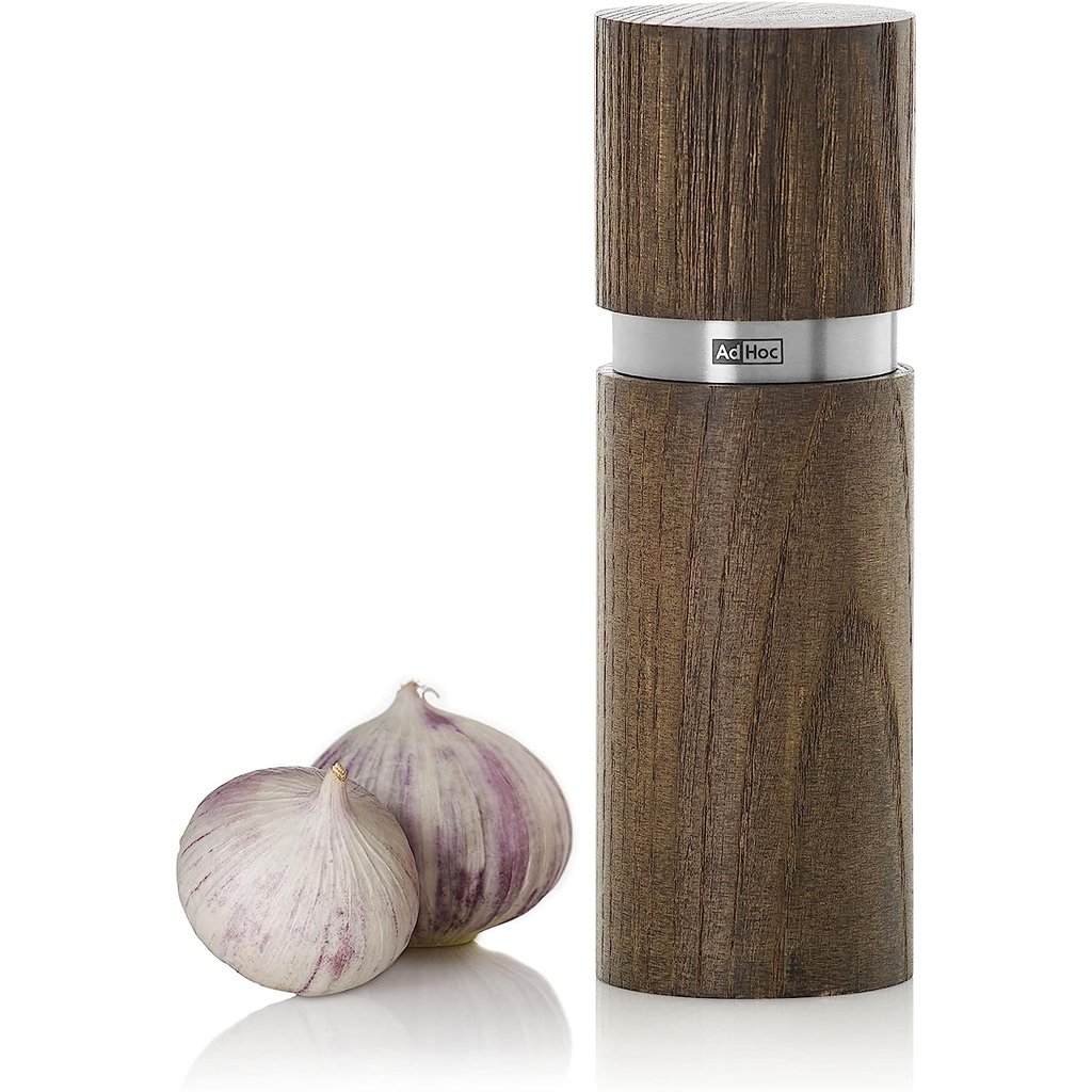 AdHoc Textura Antique mlin za so ili biber s keramičkim mlinom. Mogućnost podešavanja nivoa finoće mljevenja. Kućište od nerđajućeg čelika i drveta. Visina: 15 cm, promjer: 5 cm.