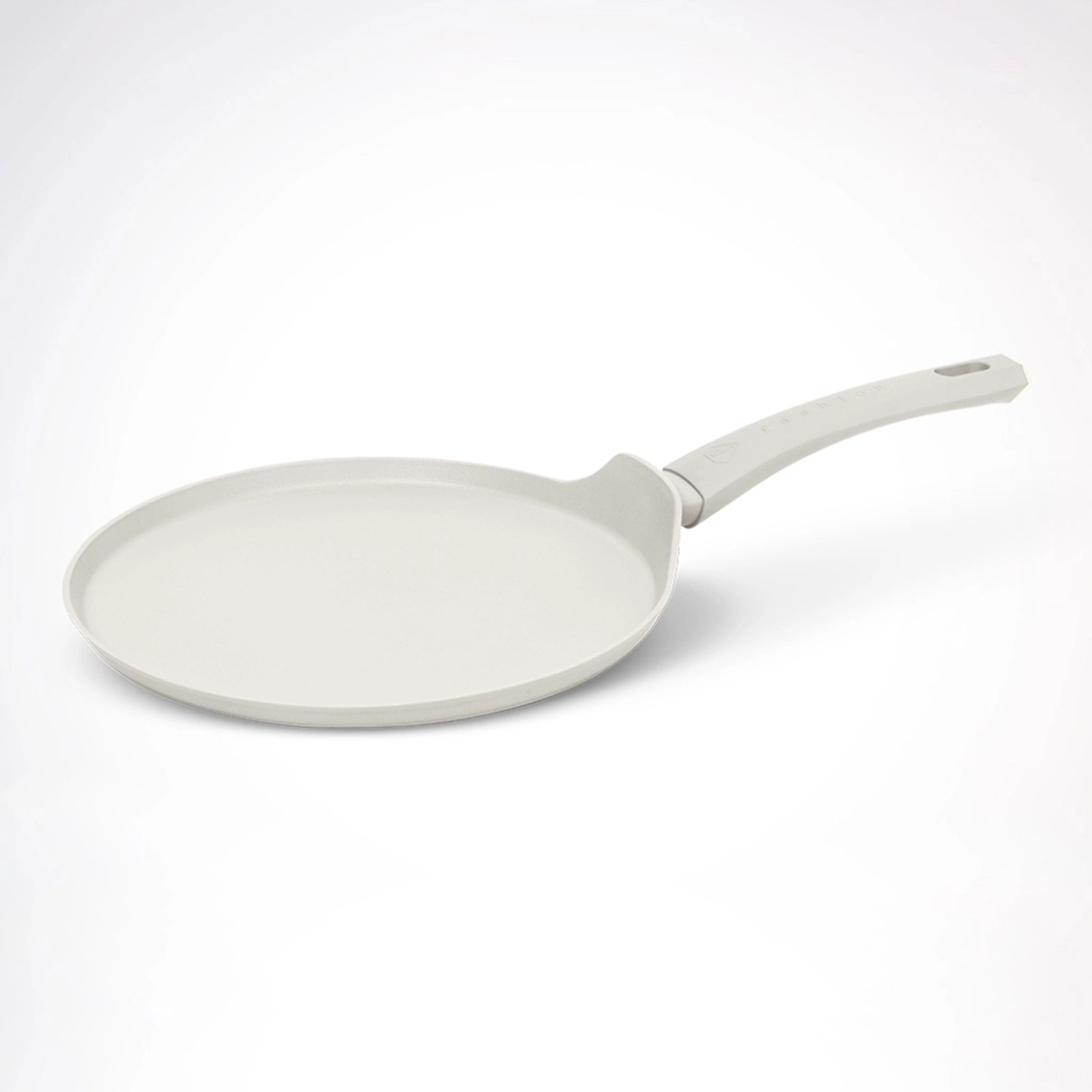 Elegantni dizajn u mat krem boji sa zlatnim detaljima čini da se tava savršeno uklapa u moderne i klasične kuhinje, a zahvaljujući ravnoj površini i niskim stranama, priprema palačinki je izuzetno praktična i jednostavna.