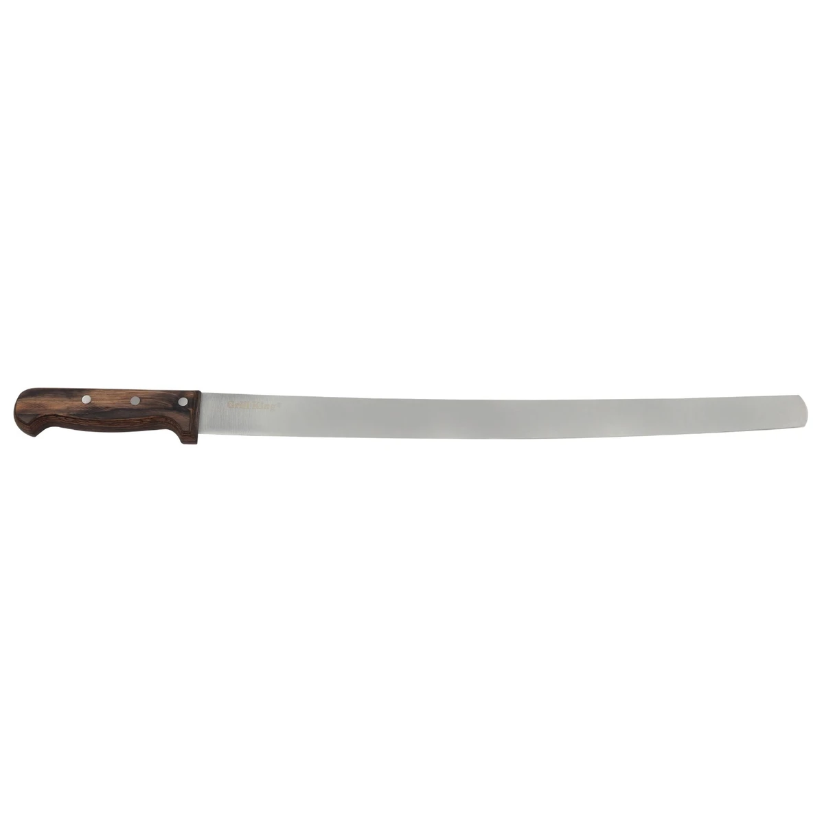 Grill King CHEF PRO nož dužine oštrice 45 cm dizajniran je za preciznu pripremu najfinijih rezova. Zahvaljujući izuzetno dugoj, ravnoj i fleksibilnoj oštrici, ovaj model omogućuje glatko, kontrolirano i neprekinuto rezanje pršuta, roast beefa, pečenja, ribe i drugih delikatnih namirnica.