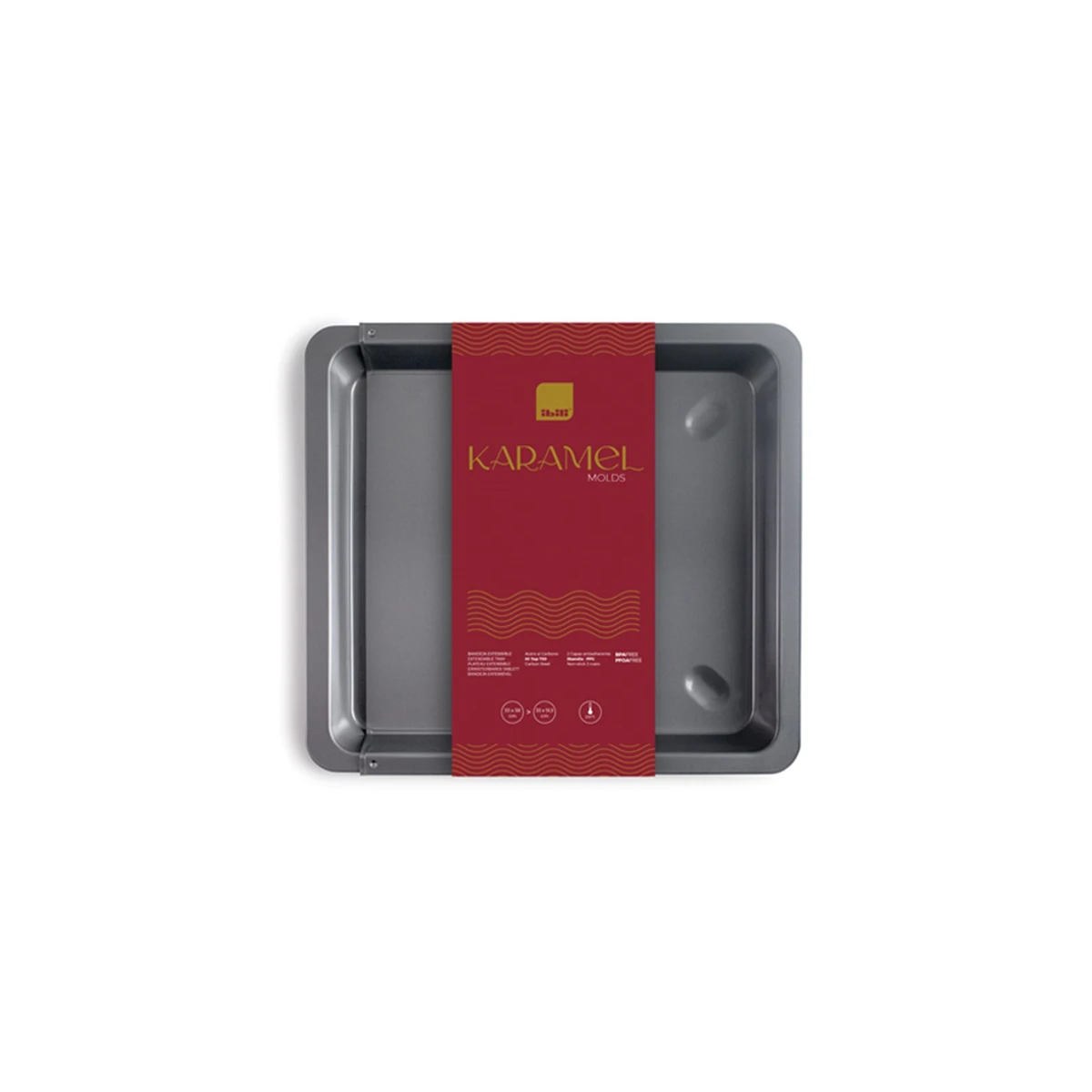 Regulirajući kalup za pečenje dio je Karamel kolekcije i idealan je za pripremu kolača, biskvita, pizza i drugih pečenih jela. Zahvaljujući regulirajućoj duljini lako se prilagođava različitim veličinama pećnica i količinama tijesta.
