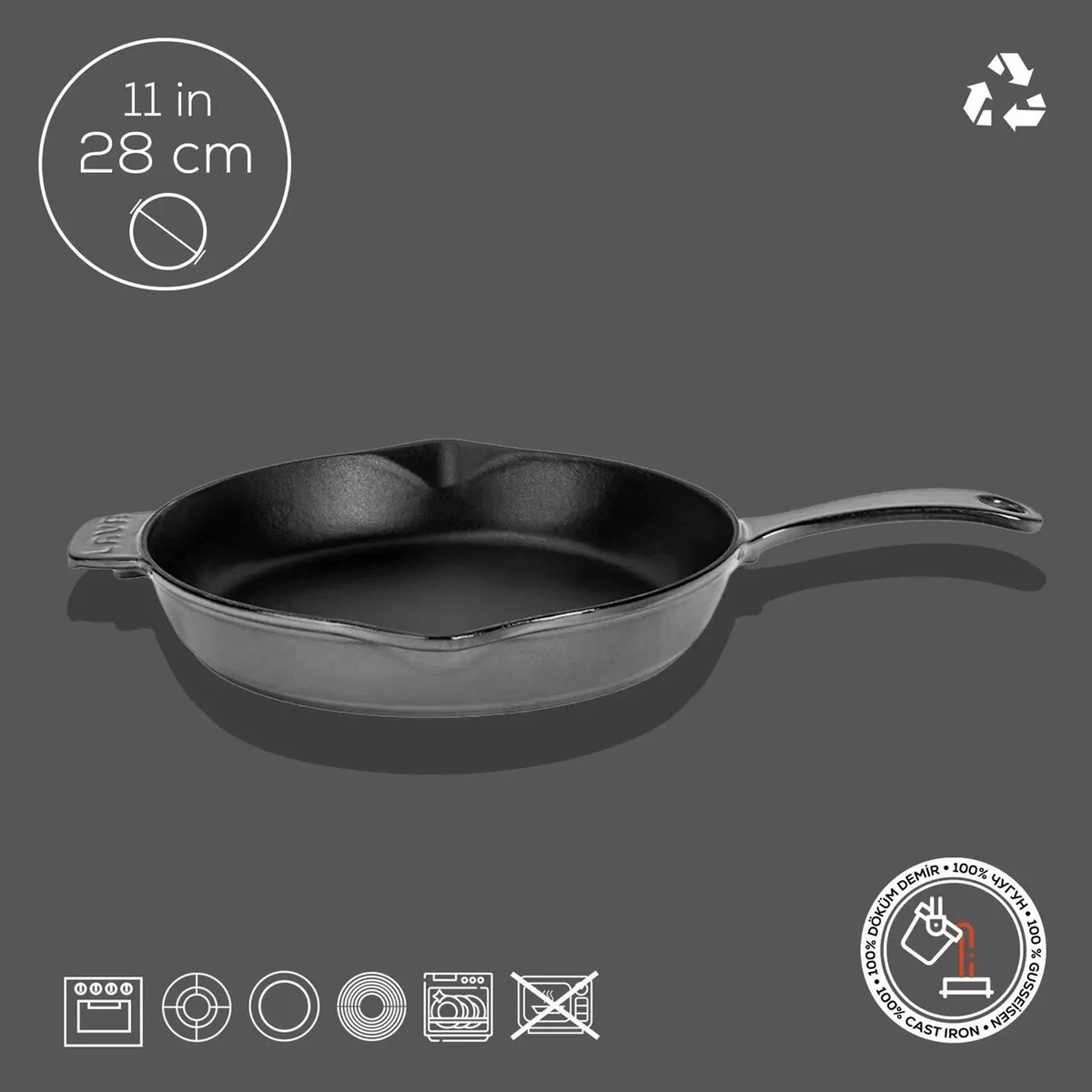 Lijevano željezo je izuzetno gust i otporan materijal koji fantastično zadržava toplinu. To ove tave čini gotovo vječnima, omogućava vam da na običnom štednjaku i kućnoj pećnici razvijete visoke temperature i da kuhate na stabilnoj temperaturi, što omogućava brže i kvalitetnije kuhanje, bez potrebe za stalnim regulirnjem plamena i micanjem tave. Lijevano željezo ove tave čini jednako pogodnima za kuhanje na plamenu i u pećnici.