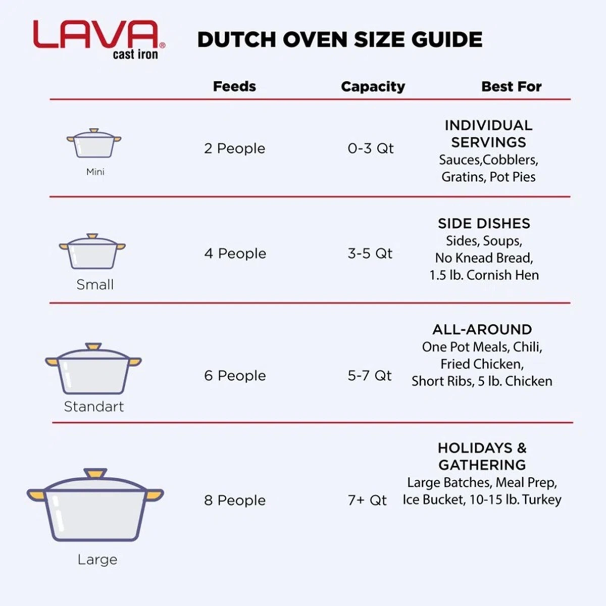 Lava donosi višedesetljetno iskustvo u izradi vrhunskog, lijepog i funkcionalnog posuđa od lijevanog željeza (gus). U proizvodnji se koriste najsuvremenije tehnologije oblikovanja i emajliranja metala.